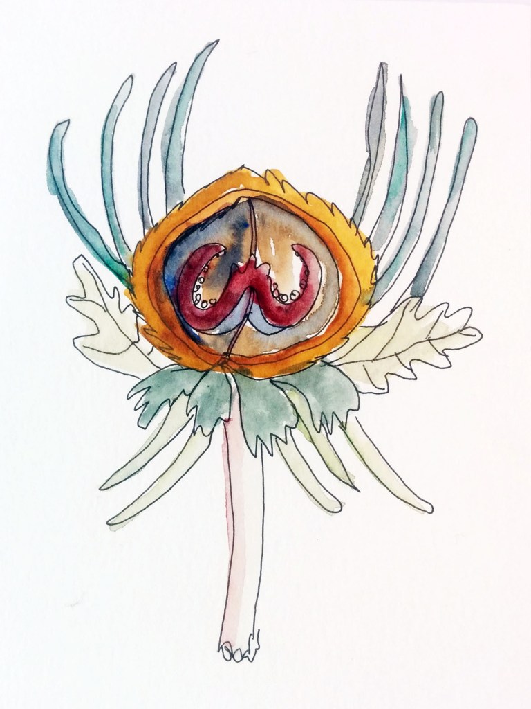 Paradise Fruits, 2015, watercolour and gel pen, each 10×15 cm