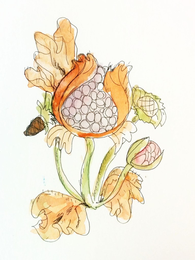 Paradise Fruits is inspired by a a touristic visit of the richly decorated living rooms at the Fortress Salzburg. One of the center pieces is a tiled stove, dating back to the 15 century, which depicts historic scenes and shows a variety of paradise fruits within the ornamented tiles.