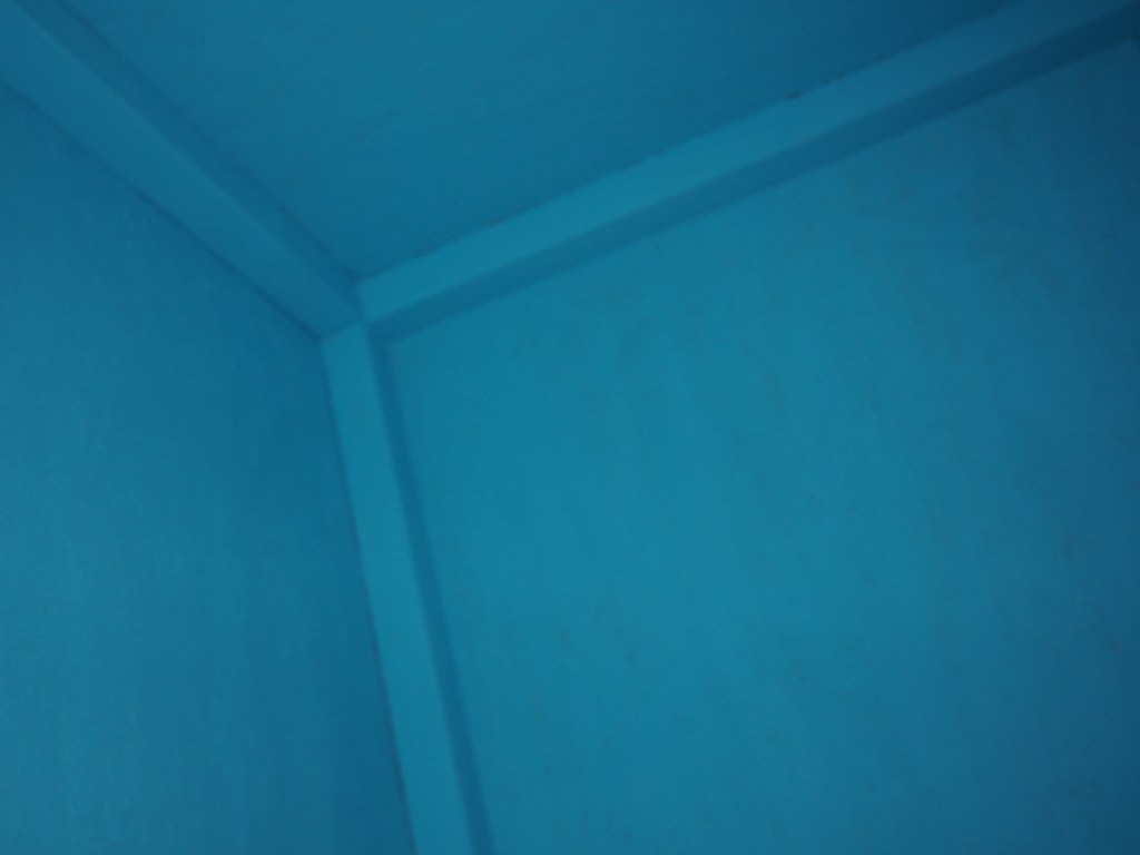 This space is not tiny, it is minimised, 2017, pavilion made from timber frame and chip boards, interior paint “Pacific 38.097“ SwingColor, LED light, 2 indoor plants, stool with rotating fan on top